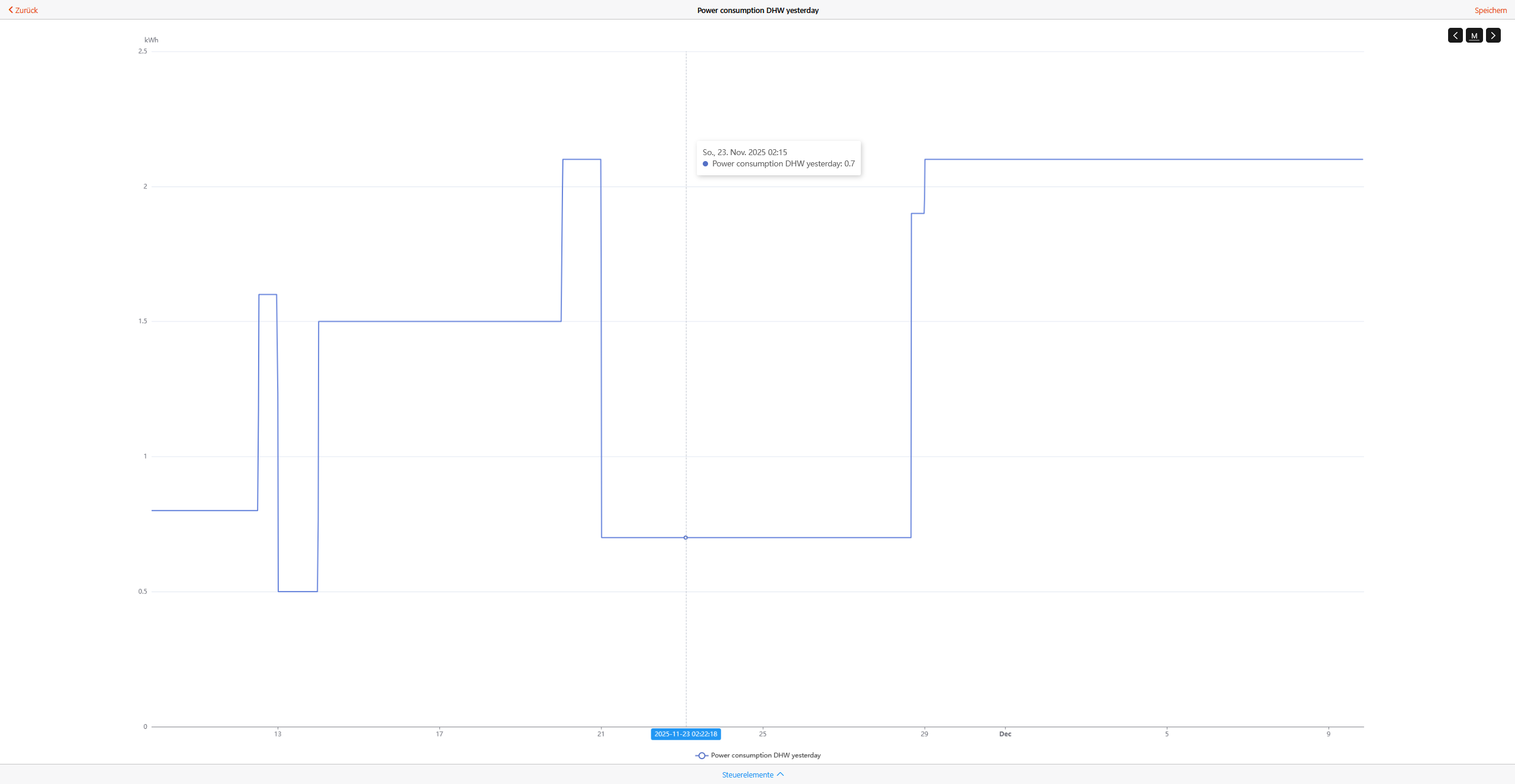 To illustrate i added power consumption dhw yesterdays as chart for the past month so you can see that the data the channel provides isn’t usable.