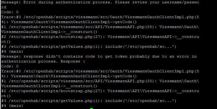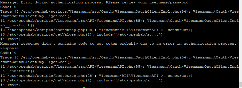 Hello, went back to a clean installation from the api (Viessmann-Api-1.4.0-SNAPSHOT.phar) and bootstrap.php. When executing on Ubuntu command line I get the error you can see in this attachment. Hope you can help me out!