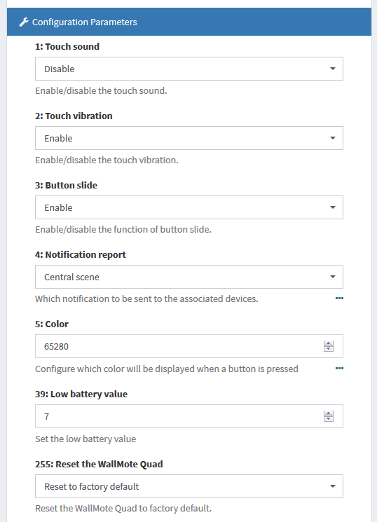 Hi, I just installed a WallMote Quad and have the same problem. Nothing but the Scene Number is updated. It is only updated when each of the four buttons are pressed. Sliding doesn’t result in any change in OpenHAB.