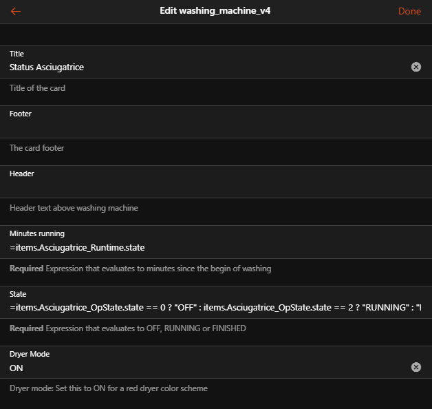 - Rule to determine the time since the last status change (see step 3 in other post above: Washing machine status widget - #3 by DrRSatzteil). This should be fired every minute as long as the device is in RUNNING state. I still have this rule three times separately for every deviceā¦