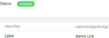 Under Things i See the Wemo Link with the ID name and status green “ONLINE” see screen shot