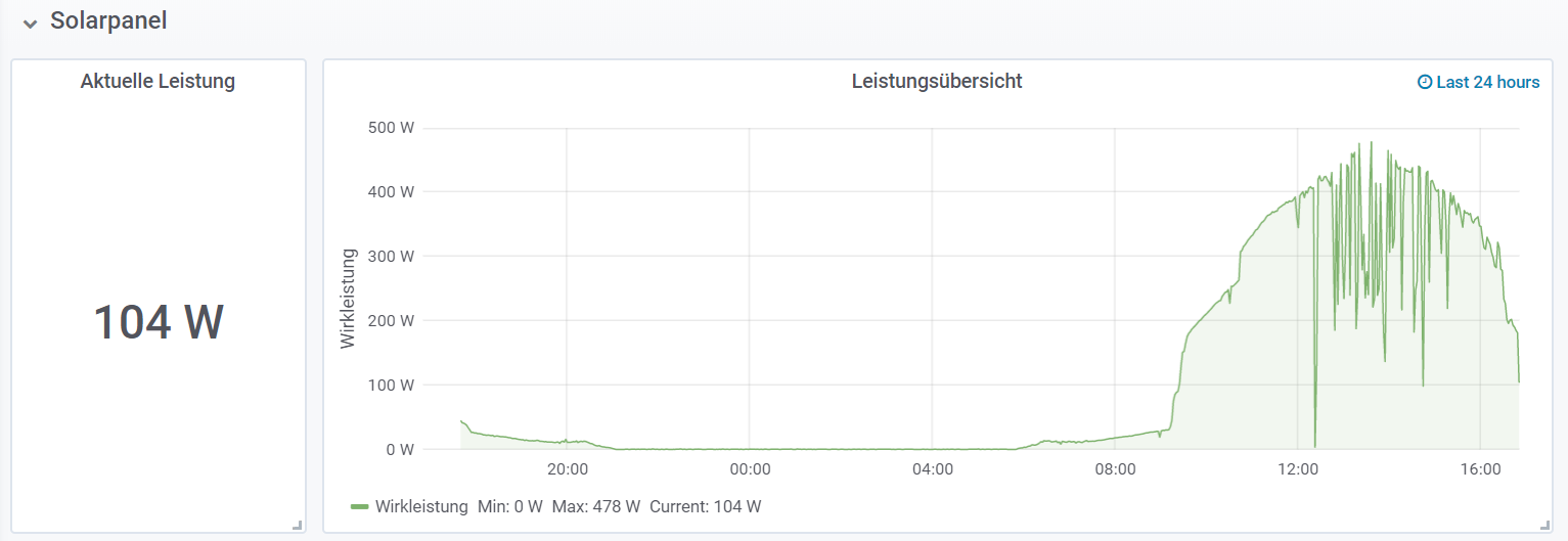 The interesting thing is of course to know how much electricity is produced. That’s why I have routed the feed via a Sonoff POW to record the power every 30 seconds.