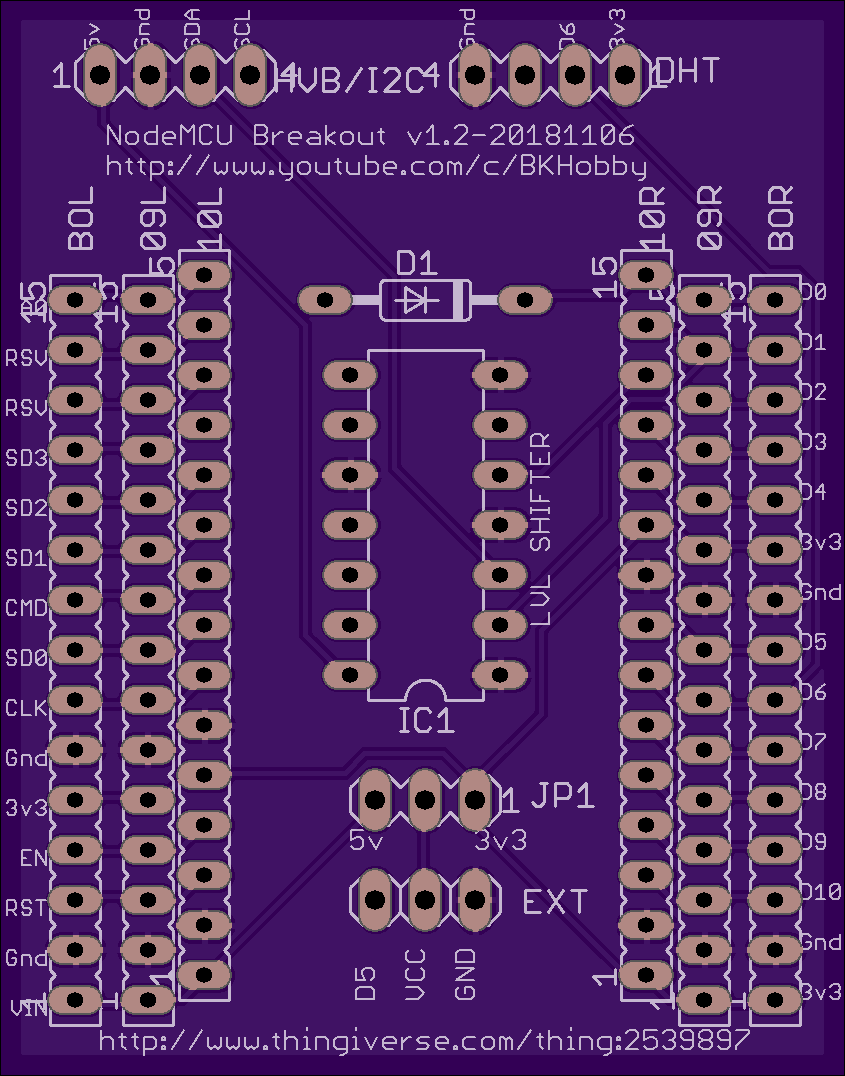 - Rerouted some of the GPIO pins to avoid using “bad” (GPIO 0,2,15) boot pins, and to use the “proper” I2C pins (D1,D2).