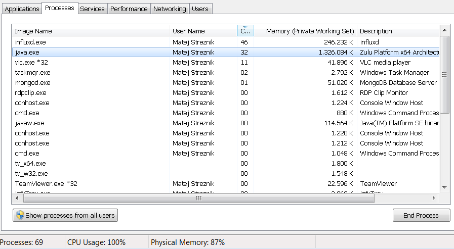 100 C:\Users\Matej Streznik\.influxdb\wal 0s