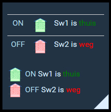 With your code everything is on one line. But I couldn’t get ‘weg’ and ‘thuis’ on the same line