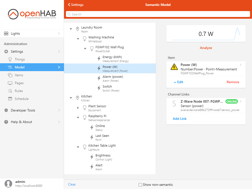 We first need to figure out when we can consider the washing machine is done, based on the evolution of that metric - openHAB’s UI Analyzer can help us do that.