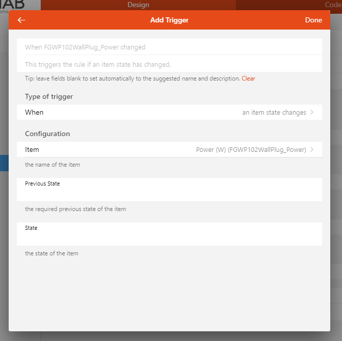 Here, we cannot use the “Previous State” and “State” of the trigger because it requires exact states and we don’t actually know what they’ll be, so we have to make the rule run whenever the state changes and try to implement the logic somewhere else.