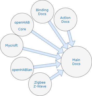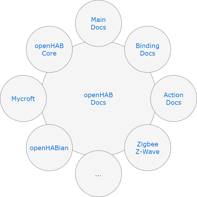 All of the addon related documentations (like those from bindings or actions) are stored and managed in the openhab/openhab-addons repository directly within their corresponding binding/action/… codebase. This way we make sure that binding developers can document their implementation easily while doing the coding. There is another benefit. When bindings get improved/changed, our maintainers can have an eye on a proper doc change to (hopefully) avoid outdated docs.