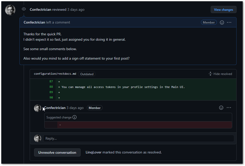 Small changes are also suitable for maintainers to skip the DCO Check (we will learn something about that one too later).