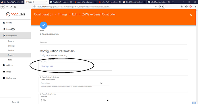 When ever i use this binding including the usb stick needed, my symlinks are not working, as well as that i cannot choose another serial port than the one needed for this binding, all the other serial ports are not listed anymore inside paper ui. see here, the marked circle.