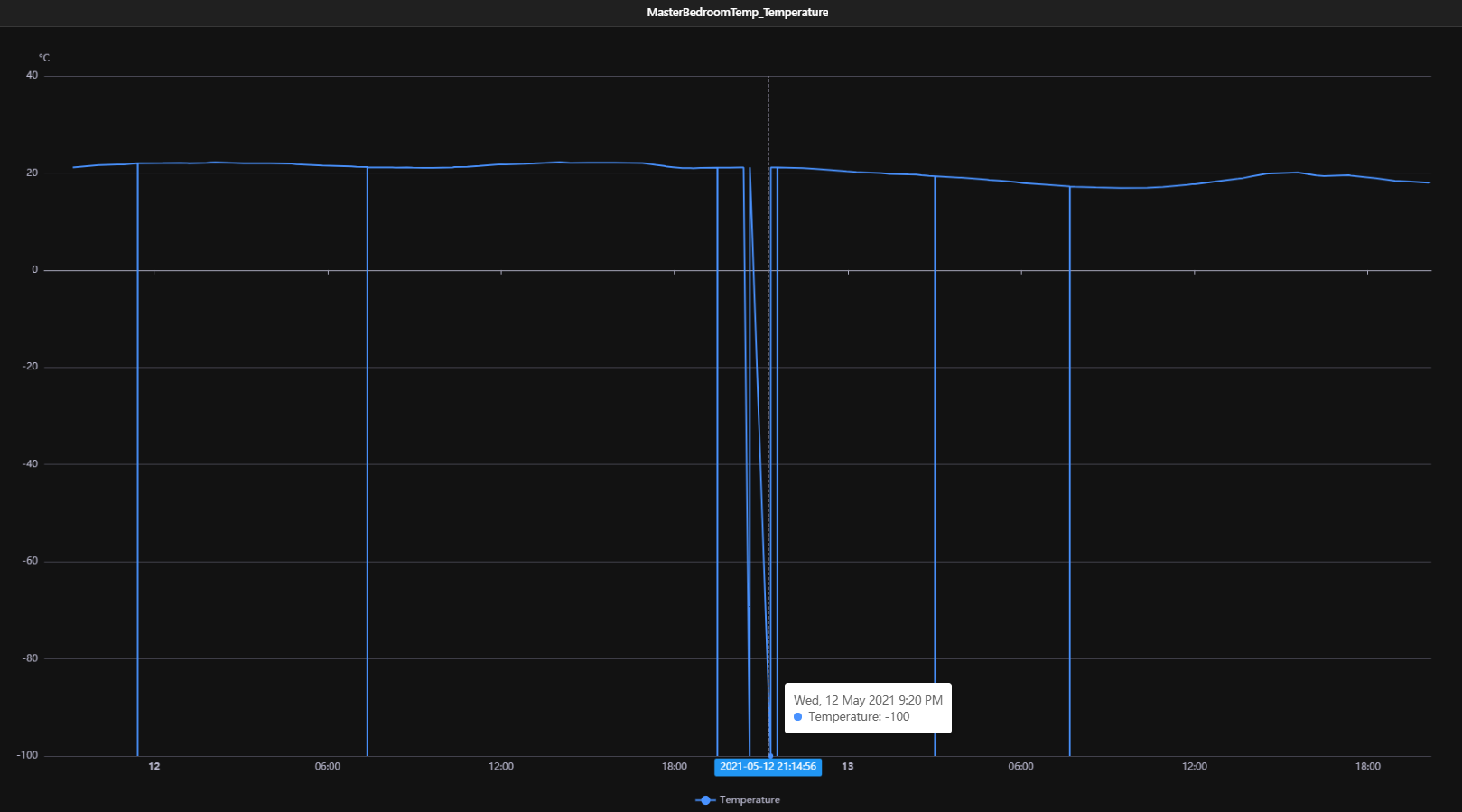- Temperature values show as “-100”