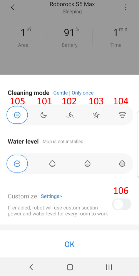 However, the customize switch is only active when the mop mode has been also set correctly.