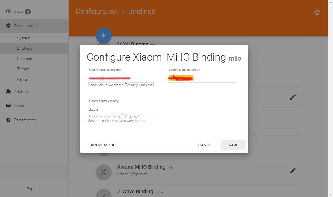- The device info is currently only retrieved from the cloud at logon if you add a device or reset it, you need to logon again. The simplest way (without restarting the binding) is to change e.g. the county string.
