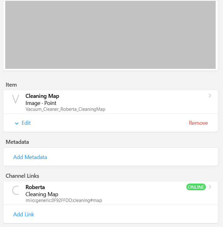 Hi, I’ve the same issue with getting displayed the cleaning map in OH3.1. The _celaningMap item is created as type of image and it’s value alway is NULL and no image is displayed.