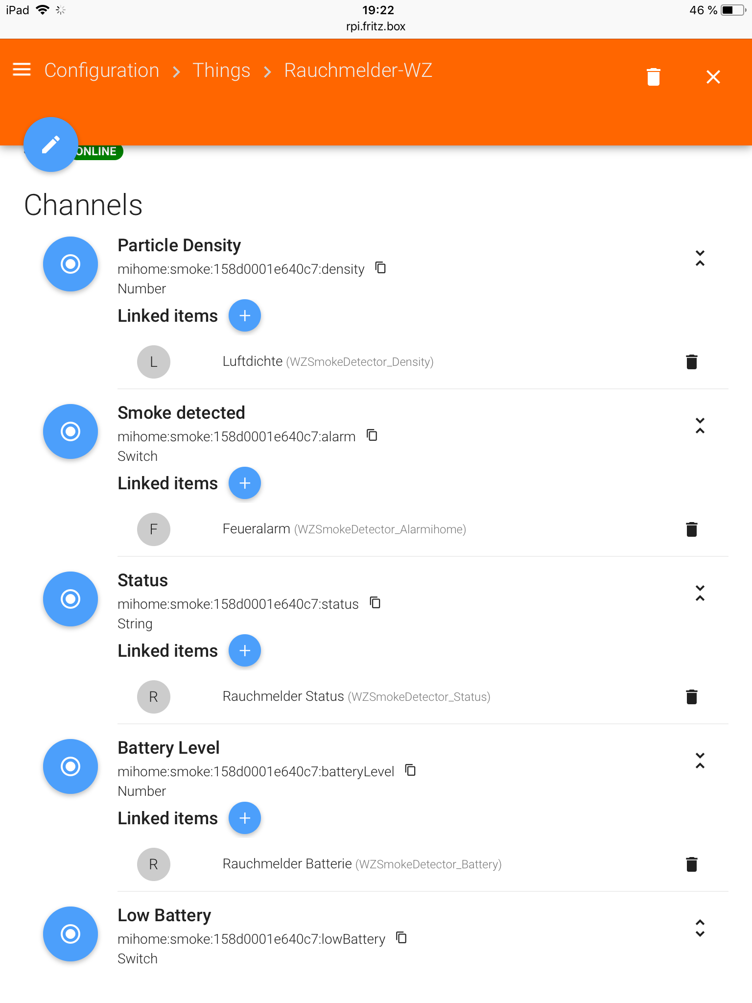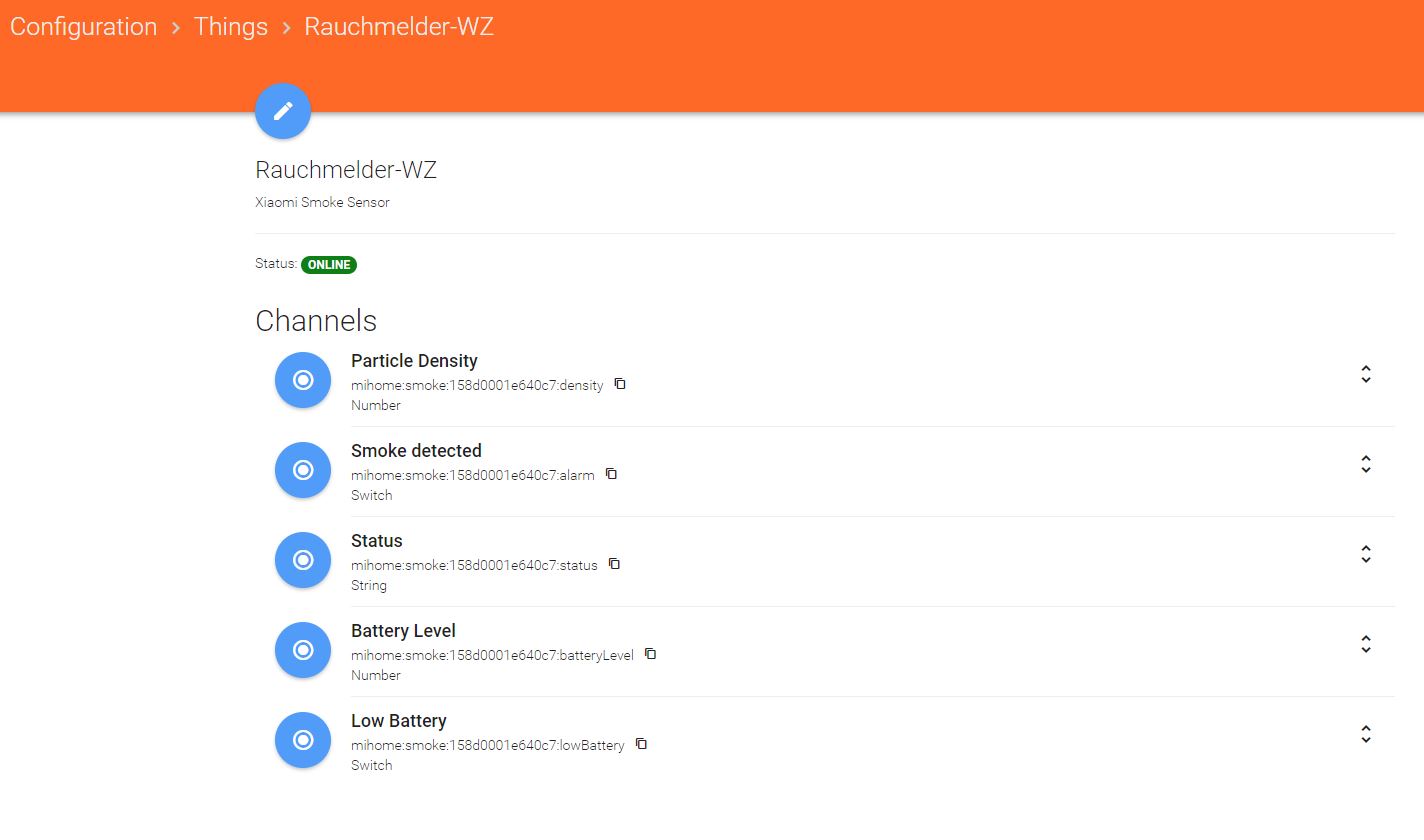 I am using Xiaomia Smoke Detector with deConz Raspbee, nothing is properly transmitted to OpenHAB but the “Last Updated” item. When any change happens with the Smoke Detector (like fire alarm is on), only the Last Updated value will change.