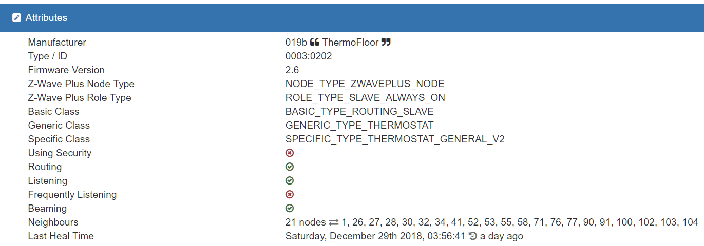 I just installed a couple of new thermostats from Thermofloor “HeatIt Z-TRM2fx”. These show up as the (older) Z-TRM2, as they share manufacturer “019B” and type/id “0003:0202”. The FW version on mine is 3.4.