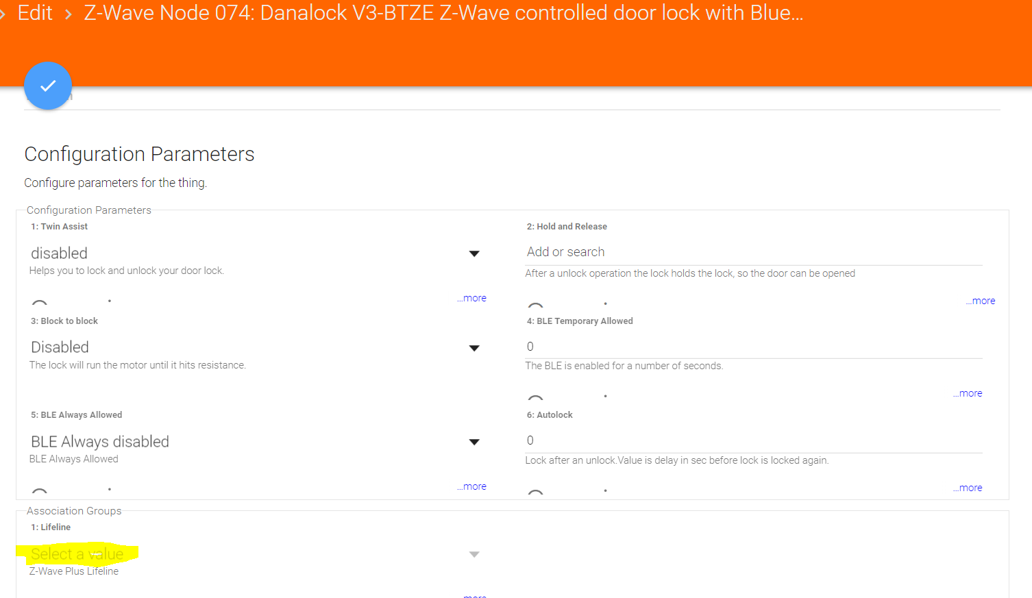 It seems, as if the Danalock always looses (or never accepts?) the lifeline setting. Because after a while and a reload of habmin (or paper ui), the lifeline is empty again.