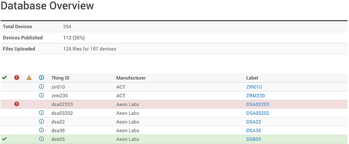The other type of notice is more a quality check. For example, some parameter labels might be very long, and this won’t work well in the user interface (it might cause the line to wrap for example), so we have a ‘recommendation’ to shorten it and add more data to the other fields. Another example is the database checks if the device supports associations, and if so, it checks if any groups are linked to the controller, and if not, it provides this ‘notice’. Ideally, I’d like to eliminate these so that we have a consistent data set, although these notices (in blue in the device summary page) can reasonably safely be ignored (for now