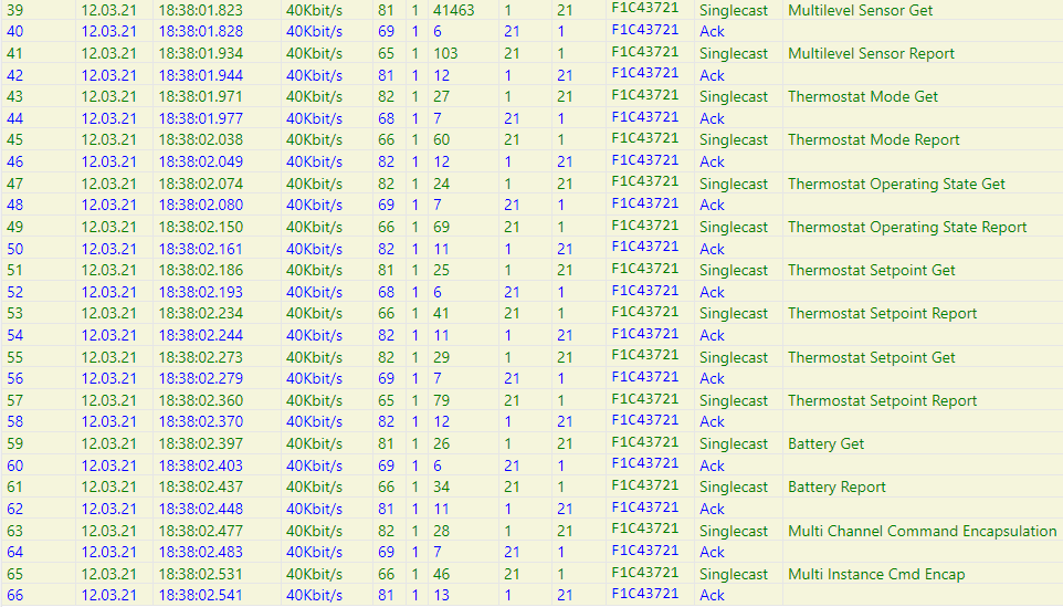 For example, I have thermostats with configuration parameters to get certain items on a certain frequency (say sensor temperature), but I’m missing an item or two and resorted to polling everything on a more frequent basis. That is working, but generates extra traffic that I do not need (like the summer cooling setpoint (it’s winter here) and the battery level (they are on the furnace power normally). I have a working zniffer, so could pick up the binary, if that is a factor.