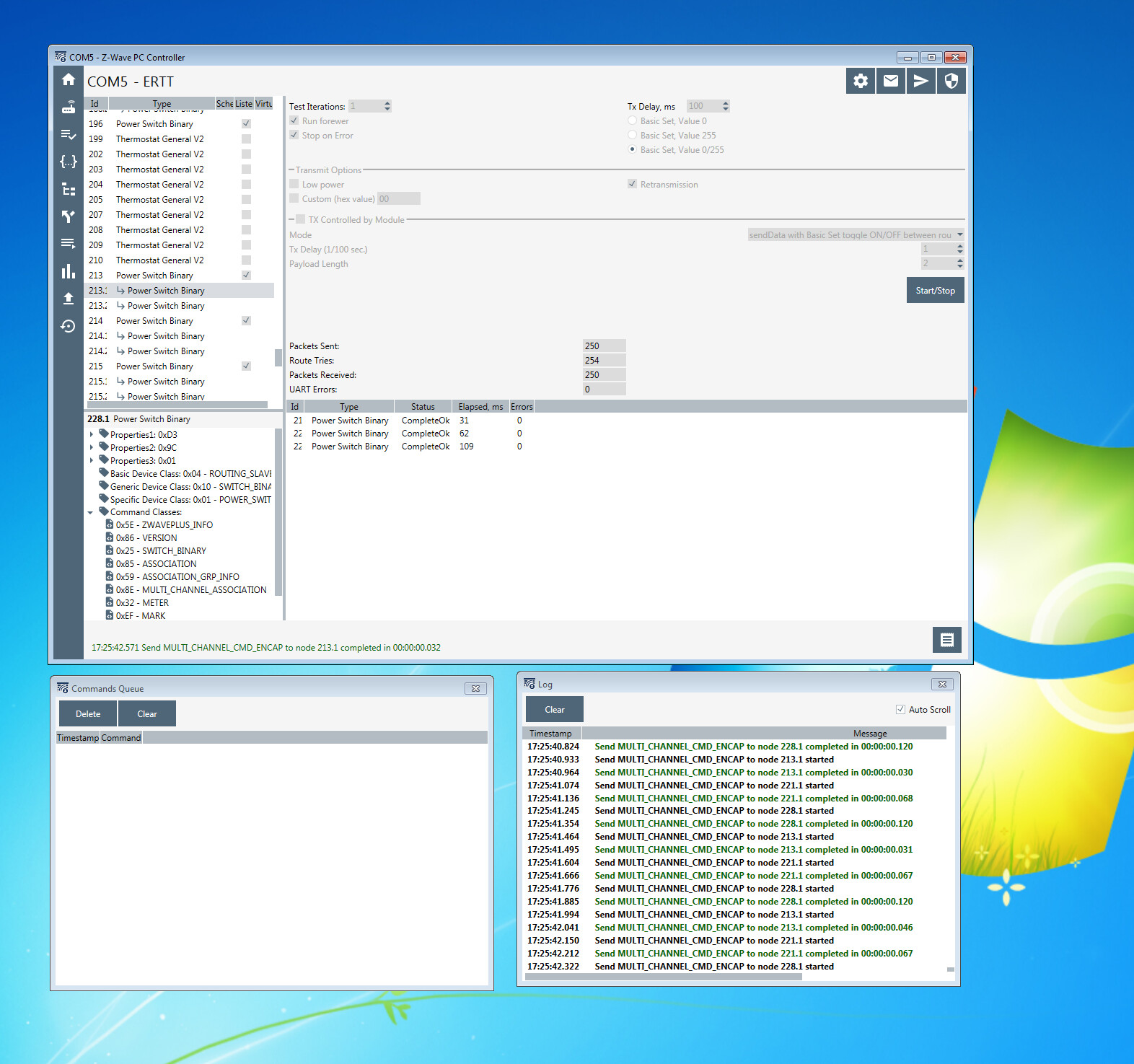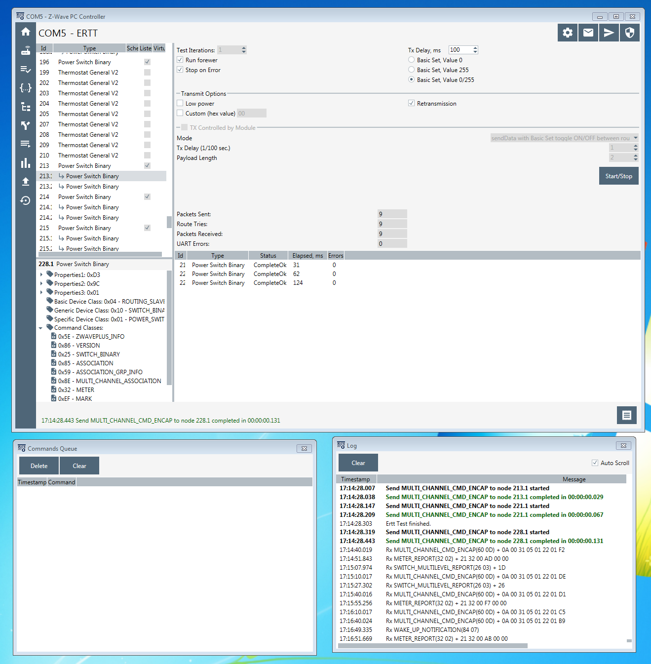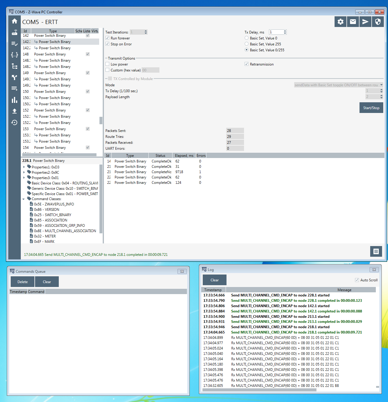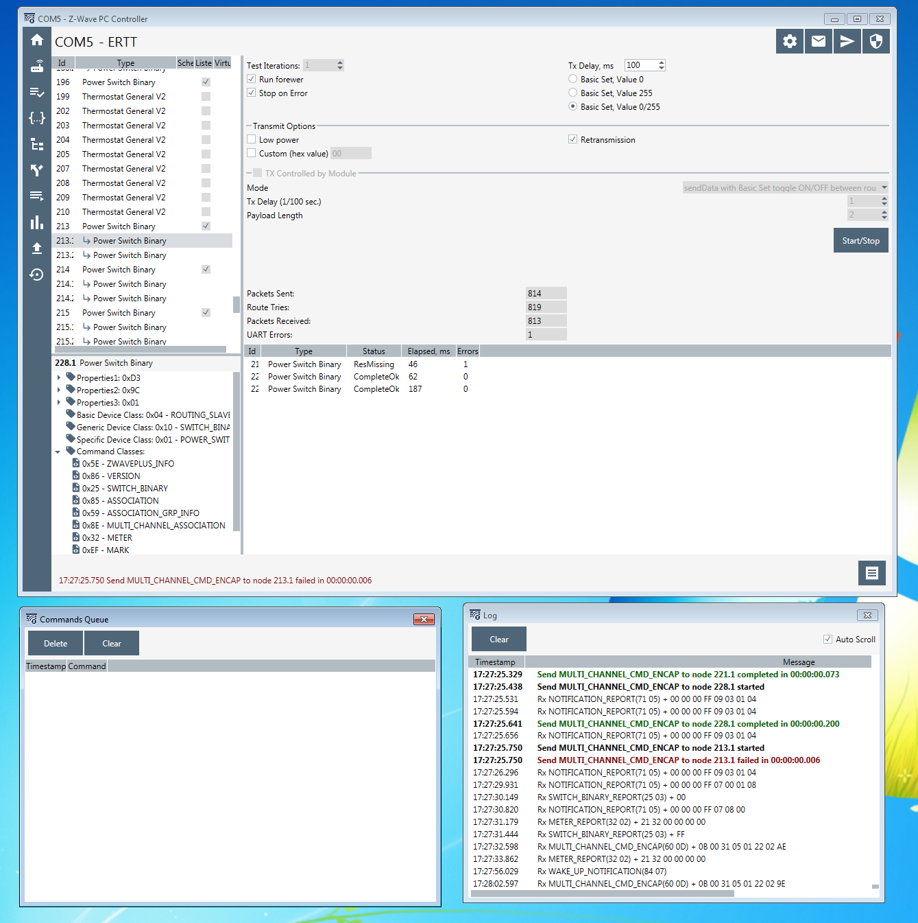 Z-wave works well but it can not process a constant stream of commands and returns. It relies on timeouts and backoffs to manage collisions and slow responses cause timeouts and retries.