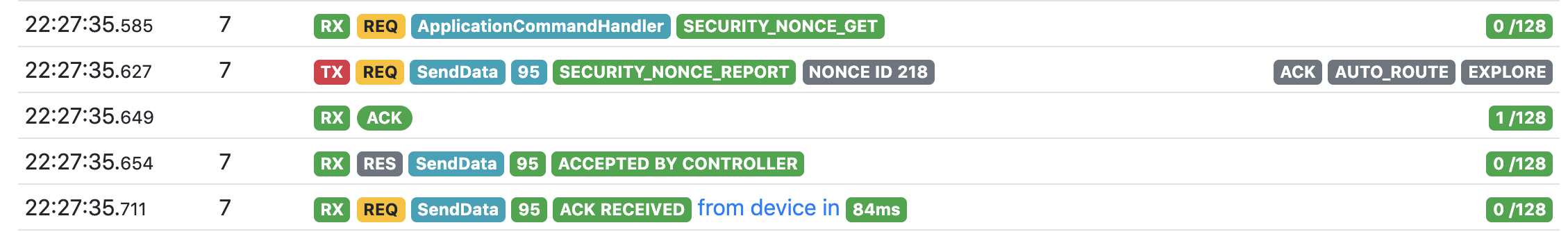 The binding doesn’t send anything to the device. The device tries to send something to the binding - it requests a nonce, which is the start of a secure transaction. The binding responds, but there is then no data transferred. We see this in the log periodically - it looks strange to me as I would have expected the device to then send a command to the binding, but it doesn’t.