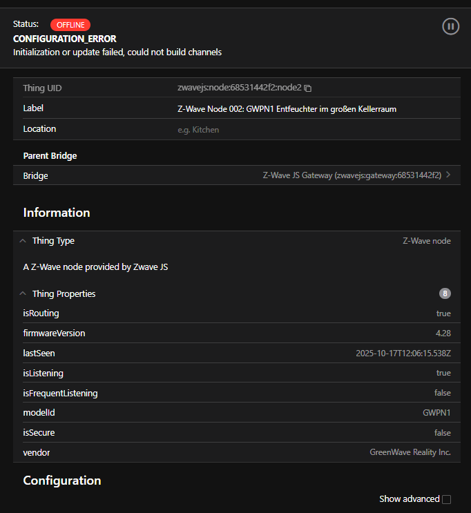 After updating to OH 5.0.2 and updating Z-Wave JS UI to 11.5.2, two nodes no longer work.