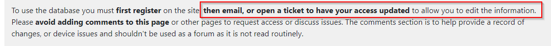I think you need to open a ticket on that site to request database edit access, as stated in the guide. Do you have any suggestions on making that instruction clearer?
