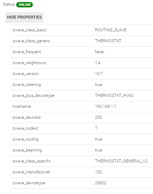 What does HABmin or PaperUI show? What is showing in the device properties/attributes?