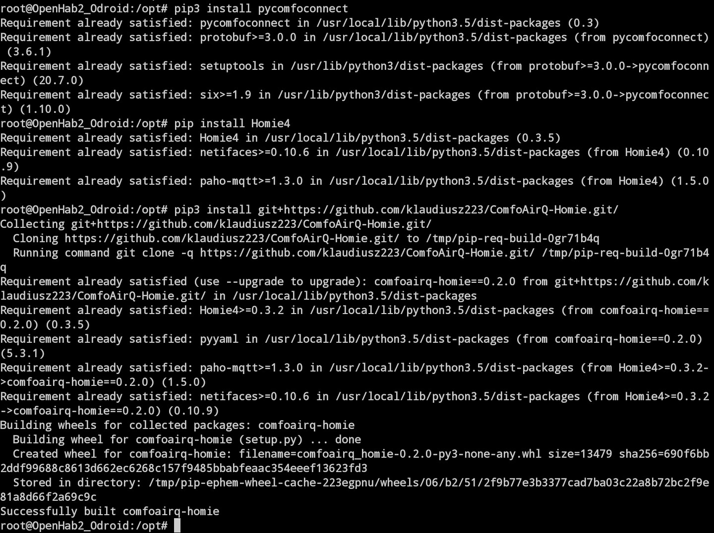 Successfully installed Homie4-0.3.5 comfoairq-homie-0.2.1 netifaces-0.10.9 paho-mqtt-1.5.0 pyyaml-5.3.1