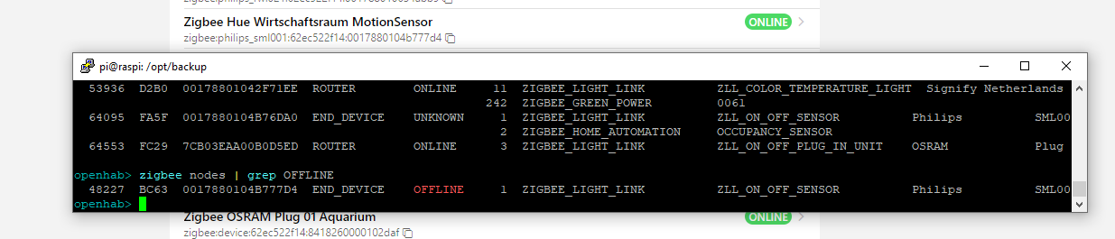 The binding uses reporting to keep tabs on a device, and if it doesn’t receive a report in twice the reporting period, plus 30 seconds, then it will send a poll to try and get the status, and if that also fails, it will be marked offline. So the binding is trying quite hard to see if the device is really there or no before marking offline and I think that after this, if it’s offline, then there’s probably a communication issue down in the network.