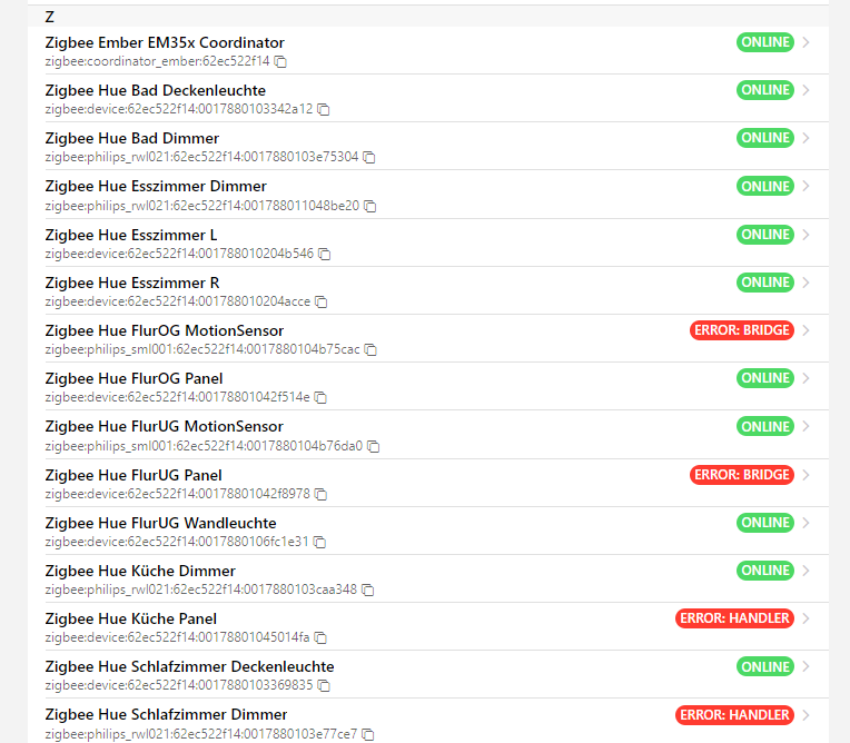 Is this a common problem with Hue bulbs then, or just a problem with @FranzS system? I’ve not been able to get hold of the logs yet so can’t assess the issues there. One thing I know with older Hue bulbs is the binding table only had a single entry which means some reports aren’t sent. This shouldn’t cause them to be marked offline, but can cause other status update issues.