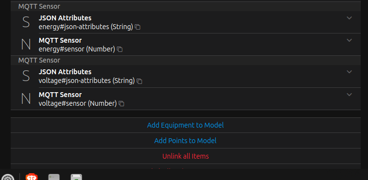 Number PlugDummy_Voltage "Voltage" <voltage> {channel="mqtt:topic:PlugDummy:PlugDummy_Voltage"}