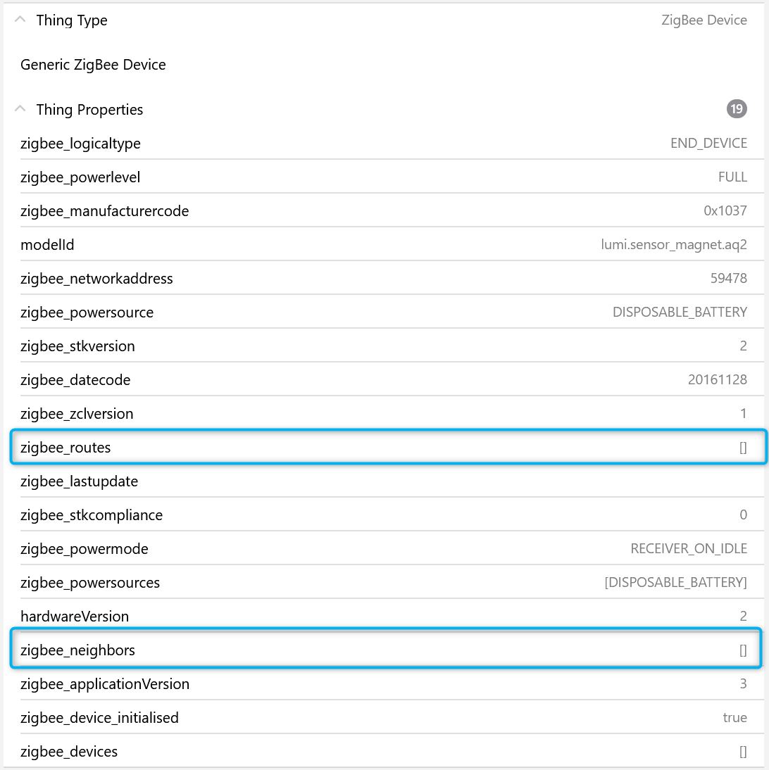 I’m using openHAB 3.0.1 and I wonder (before I try to run the script) if v3 is supported? In the main UI I see the values below in blue, for both my xiaomi zigbee power plug (ROUTER) and contact sensor (END_DEVICE)