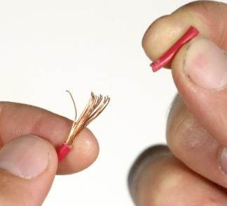 You can then pass the exposed wires through the GPIO holes, but you may want to use the following trick: once you have cut the wire sheathing, don’t pull it off with a straight movement; instead, while you pull the sheathing off the wire, keep twisting it around the axis of the wire to keep the strands tightly together. This is important to help keep the strands closely together, it is much more difficult to stick them through the tiny GPIO holes if the wire strands are scattered:
