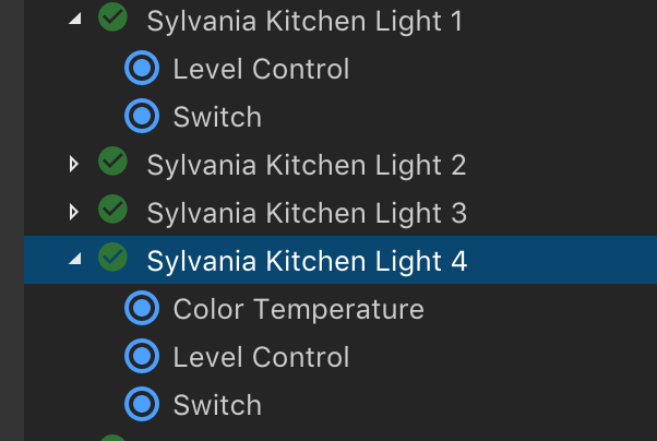 Wondered why the temp is stuck on my lights, noticed the channels have disappeared for 3/4 of them, still present for the 4th light? How does this happen? How can I fix it? These were autodiscovered.
