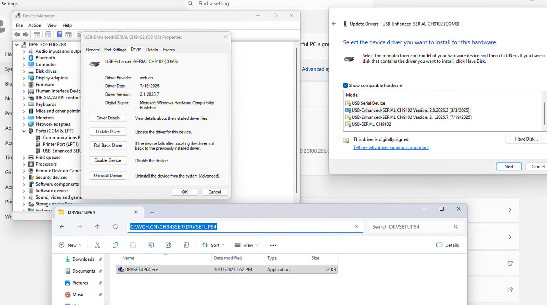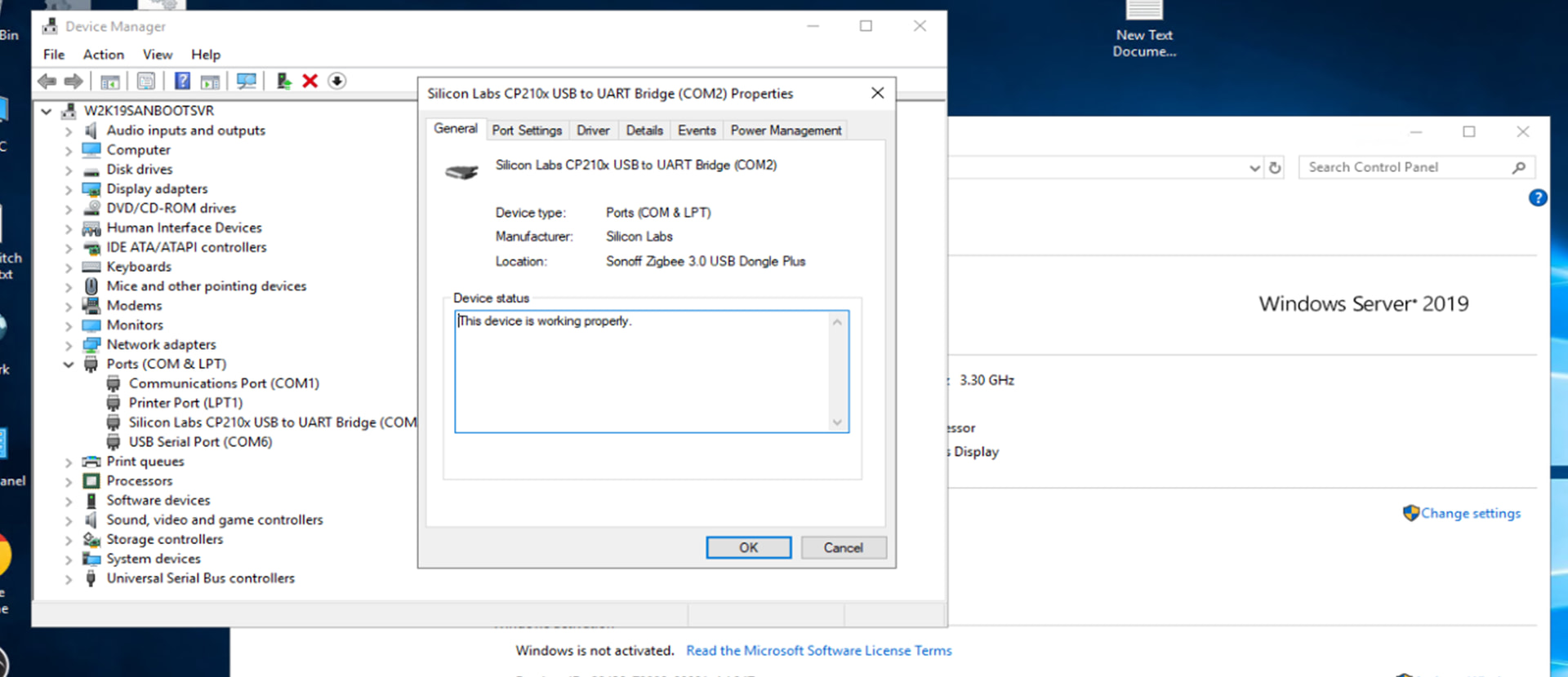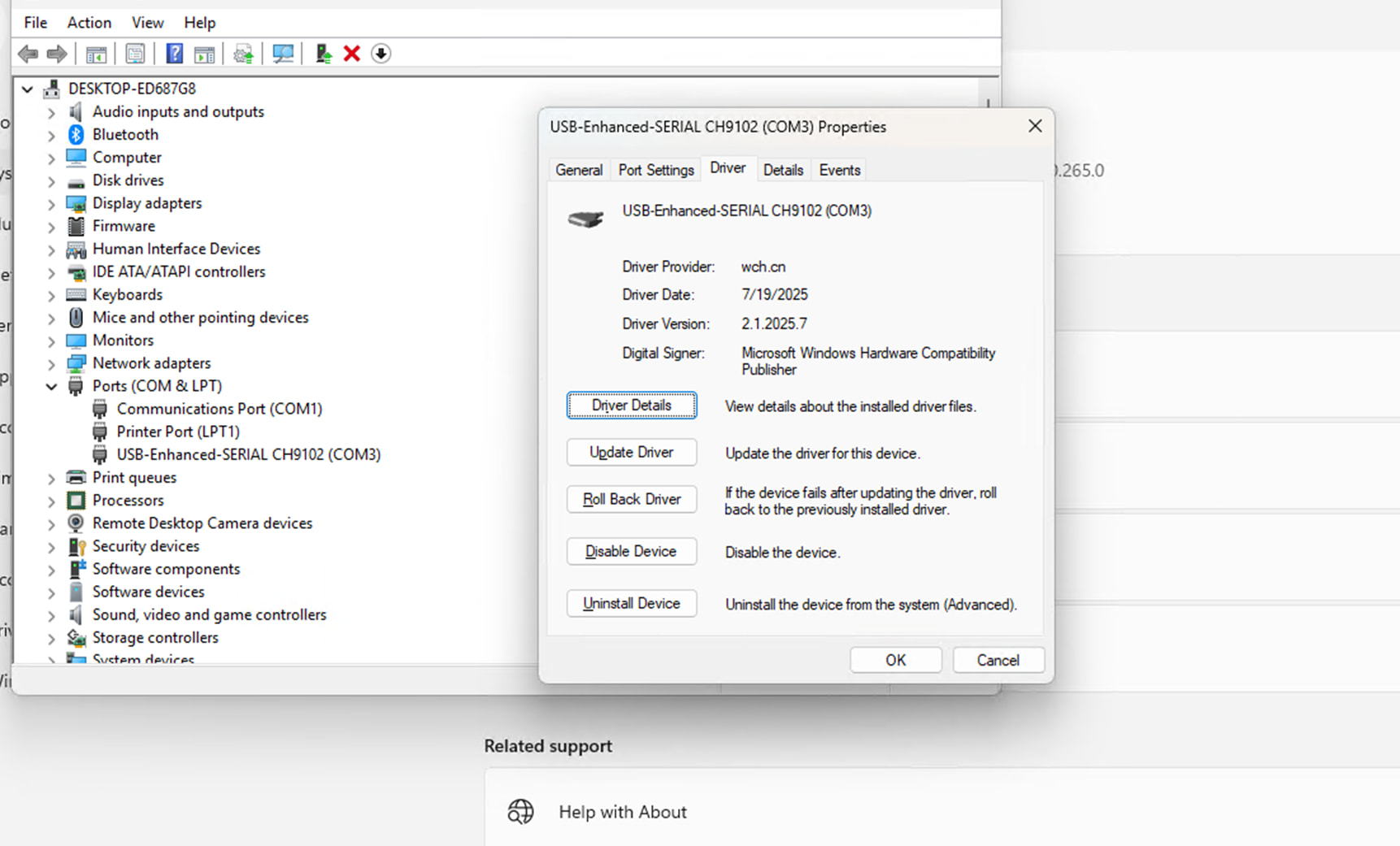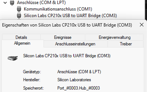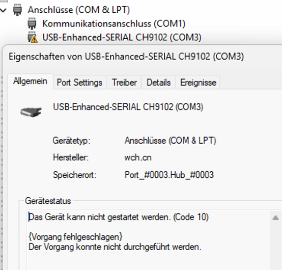 Status for device COM3: