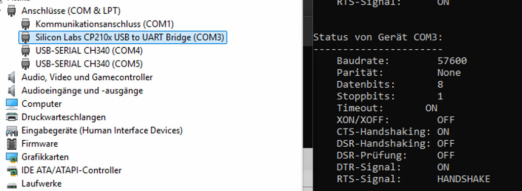 PS C:\WINDOWS\system32> mode COM3
