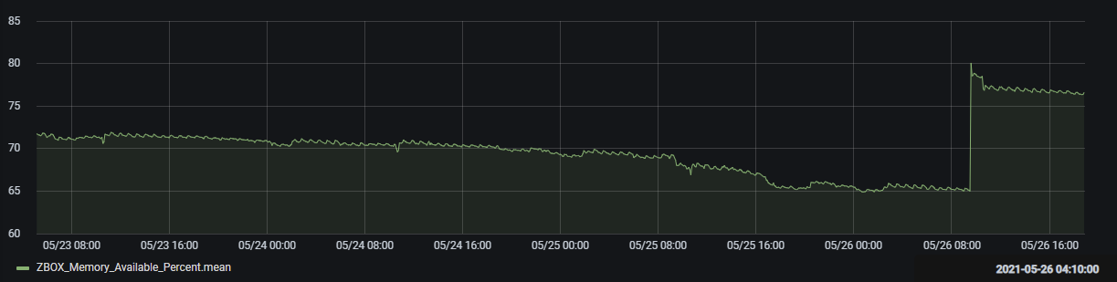 also really not sure what atually runs out of memory .. I see that the RAM is constantly getting more used .. but the graph below shows the %tage of free mem of the machine