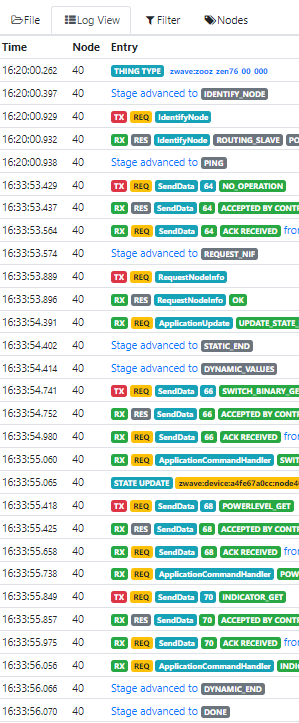 3) WAIT_RESPONSE is not good. It means the controller has not ack’ed the message. I think there is 2 seconds for that and 5 seconds total for WAIT_REQUEST. WAIT_REQUEST means the node hasn’t responded. I could look at a log for you if you wish.